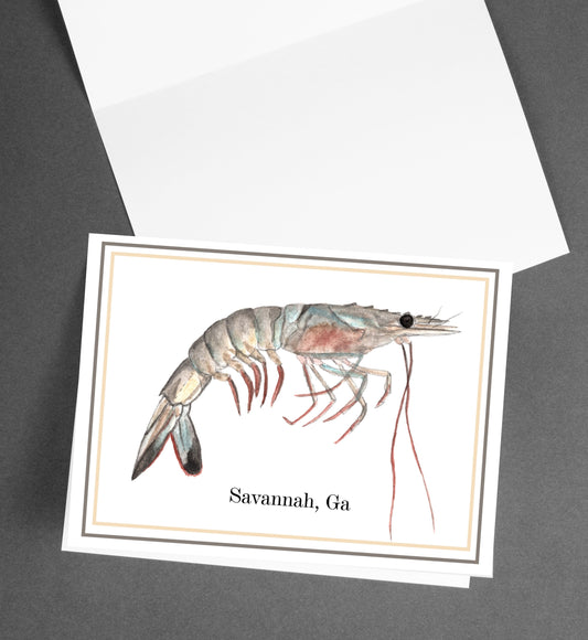 Stationary Set, "Savannah Shrimp” Note Card Set with Envelope, Accessories