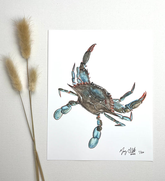 Limited Edition "Cool in Blue" Watercolor Blue Crab Print by Macey Cliatt