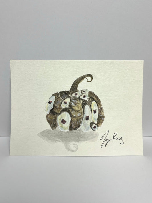 “Oyster Pumpkin” Original Watercolor, 8x10 Vintage Gold Frame