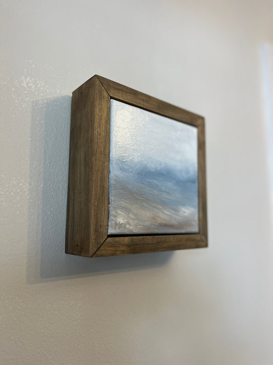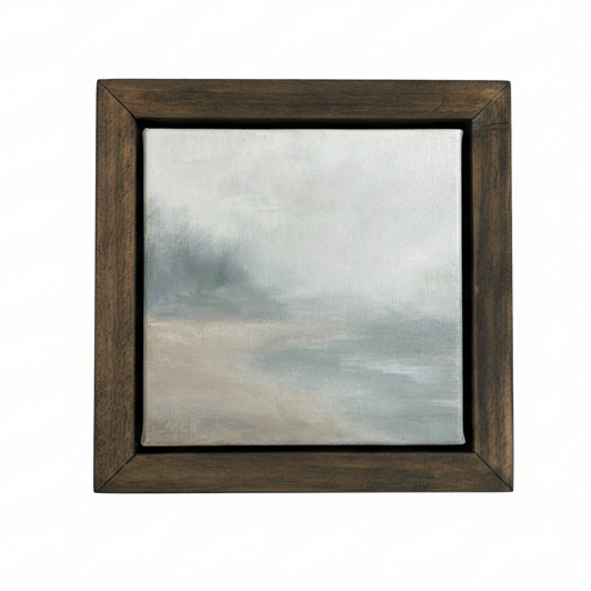 I instantly was reminded of foggy days on/near the water where sky and tide combine into one. From that inspiration these first 5 studies emerged- explorations of stillness and Faith.