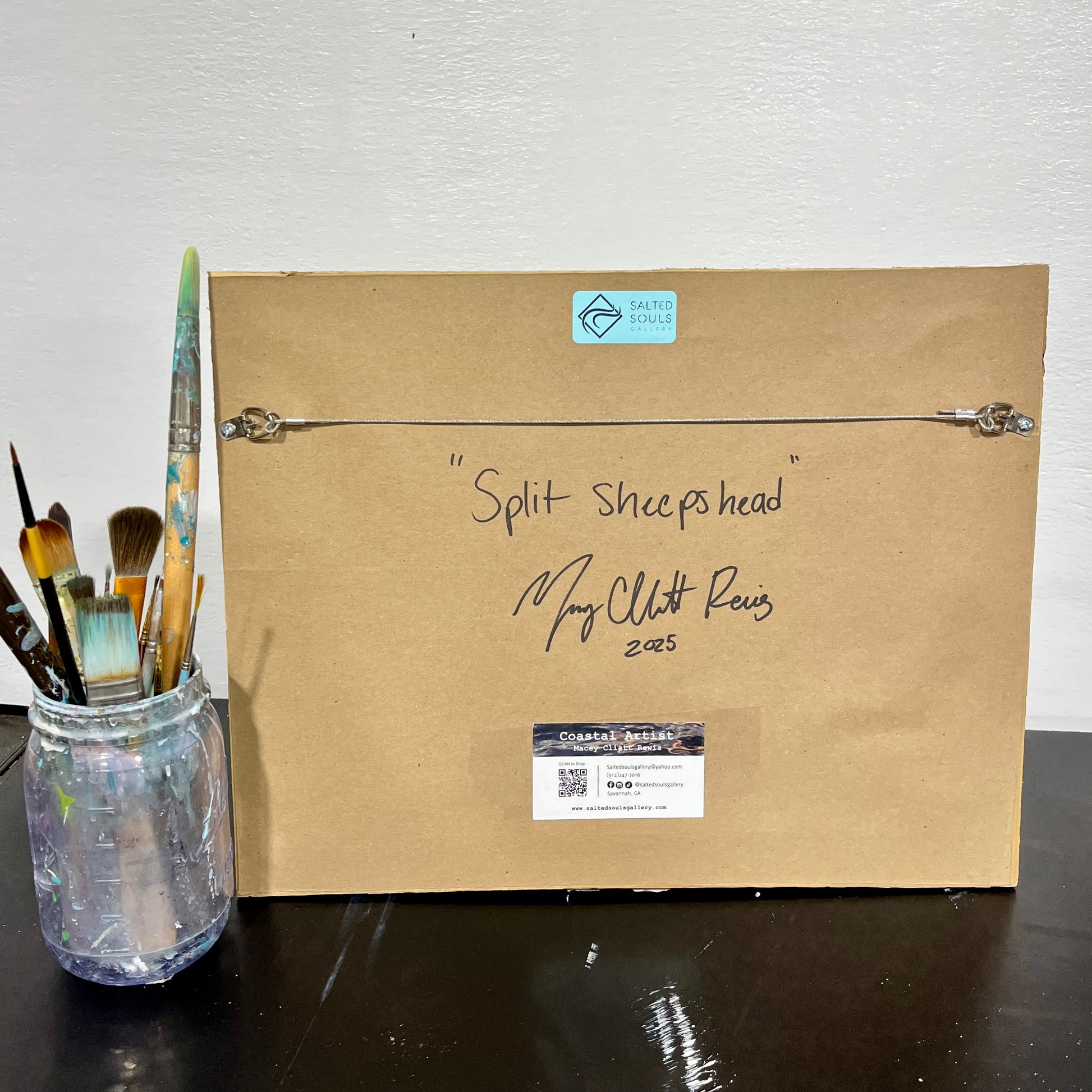 “Split Sheepshead” 12x16 Driftwood framed watercolor print